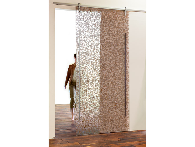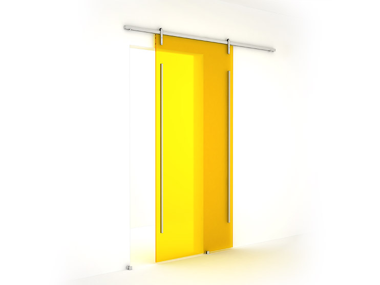 One 48" x 96" x 1/2" (1220mm x 2440mm x 12.5mm) Varia panel makes up a single wall-mounted sliding door. Panel dimension is the standard door unit and maximum size. Smaller sizes will be cut from the full panel